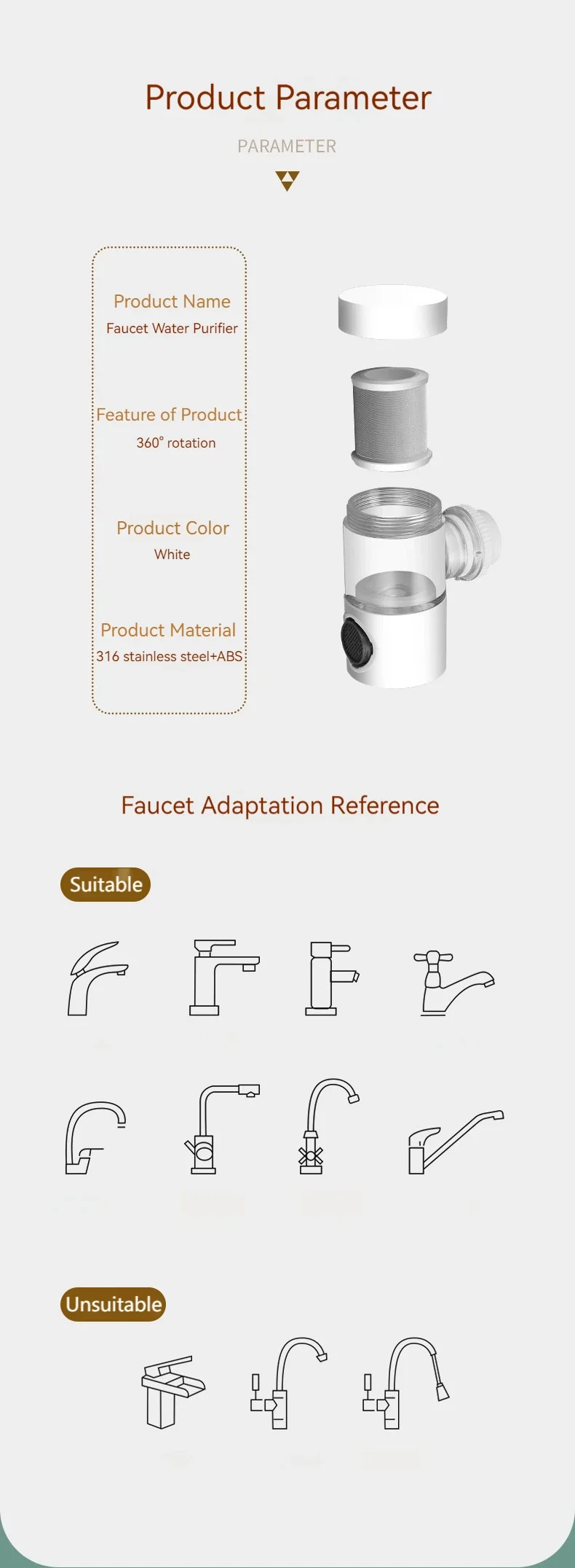 Faucet water purifier effectively removes harmful substances such as residual chlorine, sediment, red worms abnormal colors, and odors